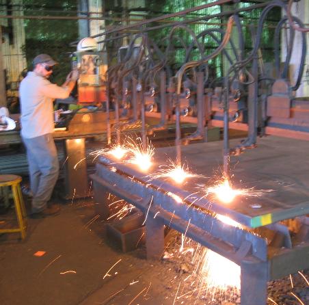 | Here's master burner Ron at his machine doin' it to some 2 1/2" thick A572Gr50 plate. |